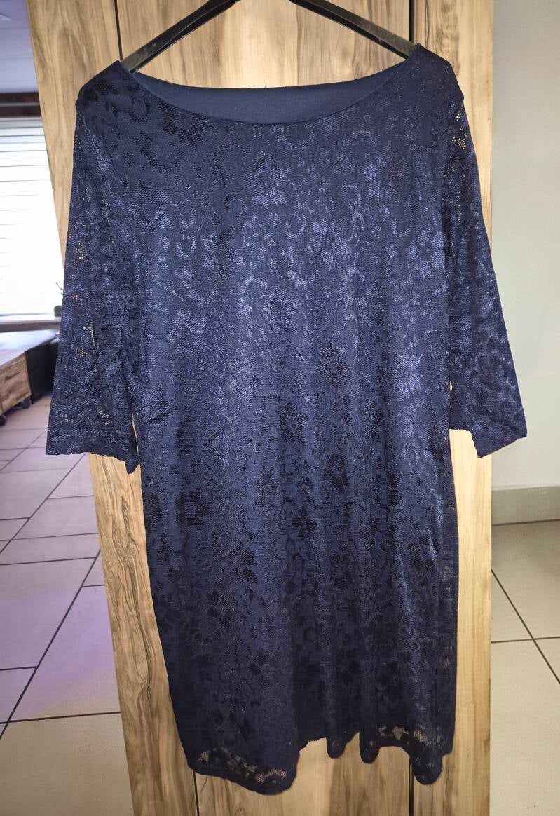 Kanten jurkje blauw maat 40 € 5,-